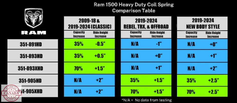 Heavy Duty coil springs designed for the rear of the Dodge Ram 1500s