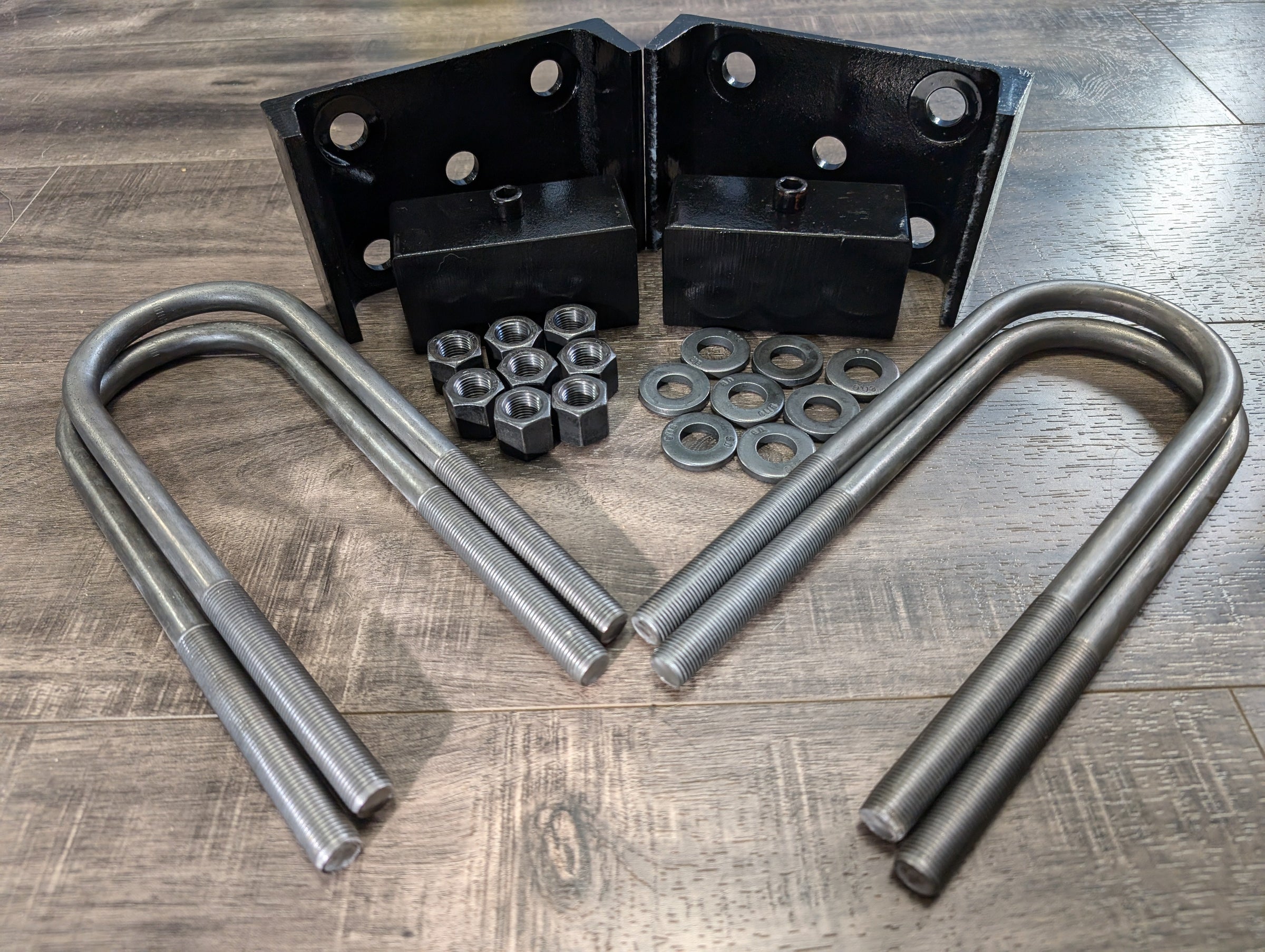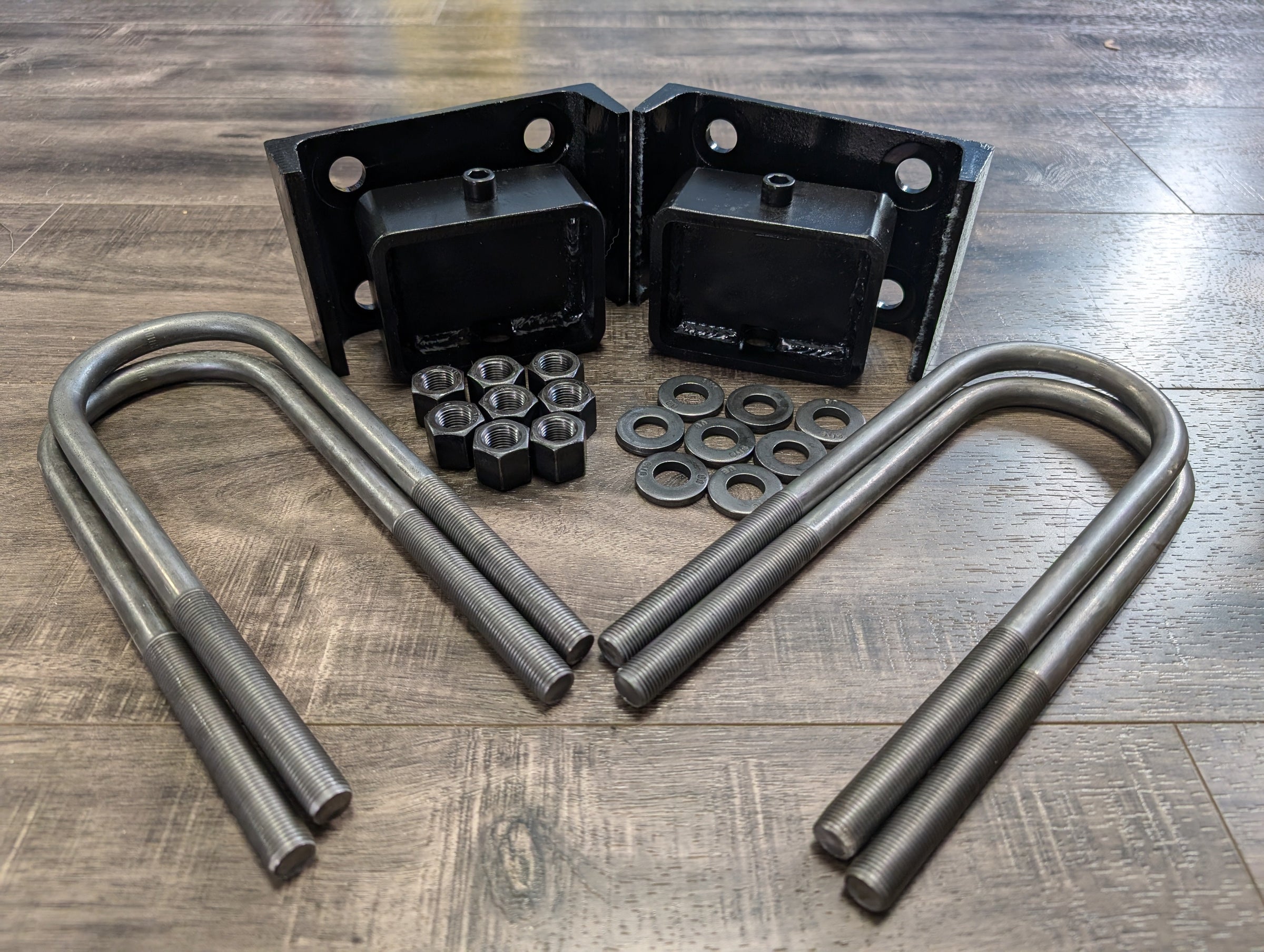- 4 Custom bent 9/16" U-bolts to accommodate the new height with the blocks