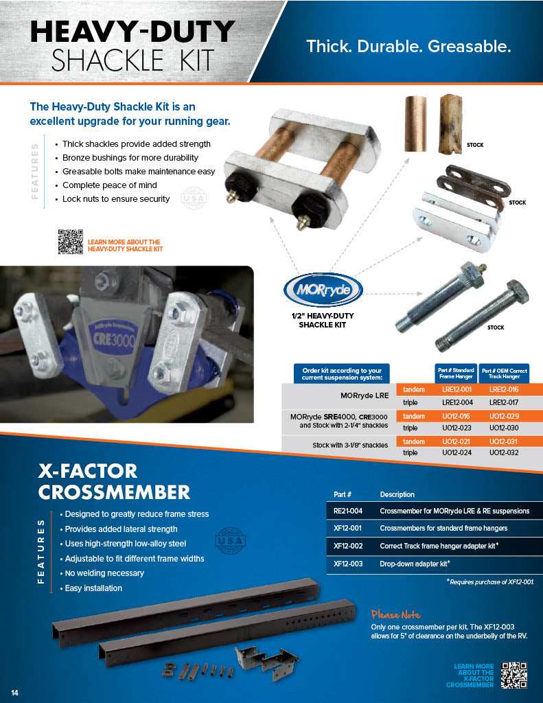 The X-Factor Crossmember kit adds lateral support to the suspension of your 5th wheel or travel trailer with high-performance crossmembers. The kit is designed to reduce stress on your frame from travel over rough roads, tight cornering, or extreme side forces.